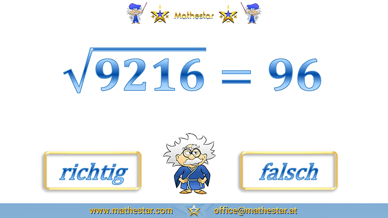 Wurzeln bis 100 Antwort