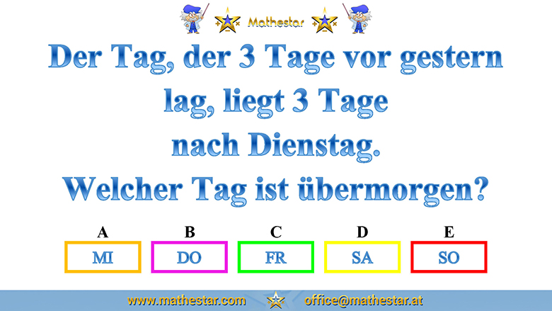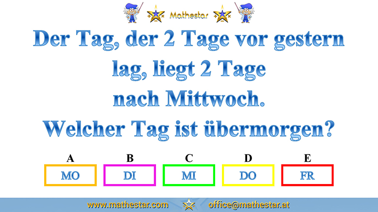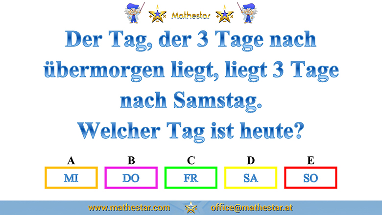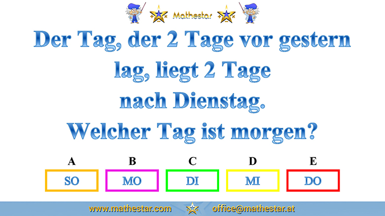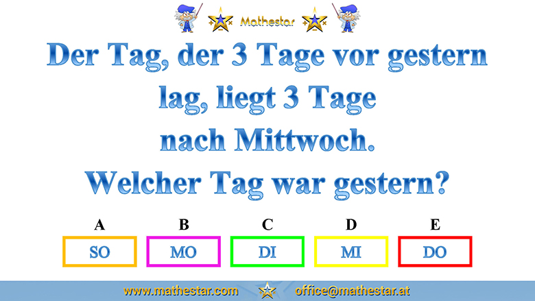 Zurück Übungsphase 12.Schulstufe Gehirnjogging Welcher Wochentag? AUSWAHL