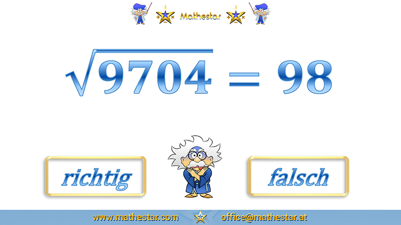 Wurzeln bis 100 Antwort