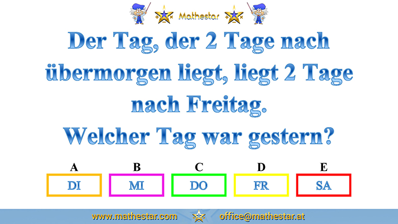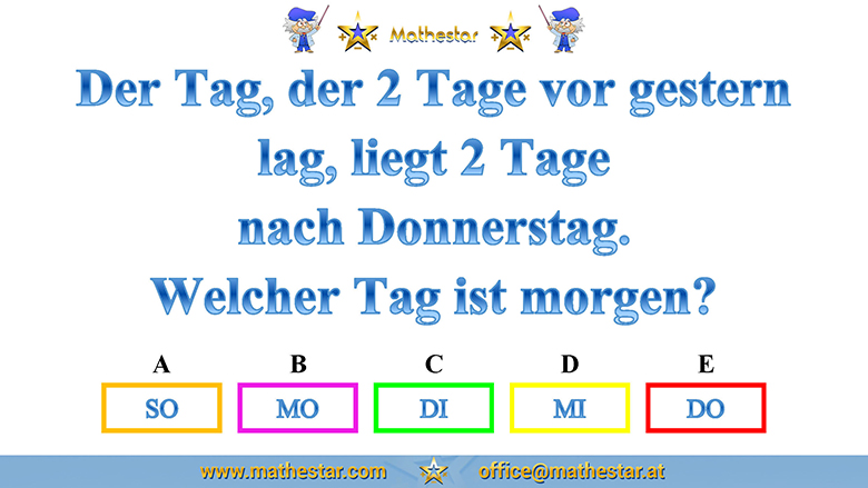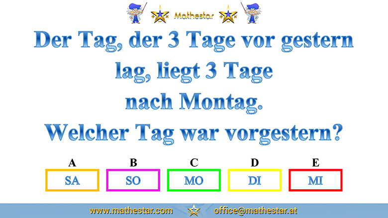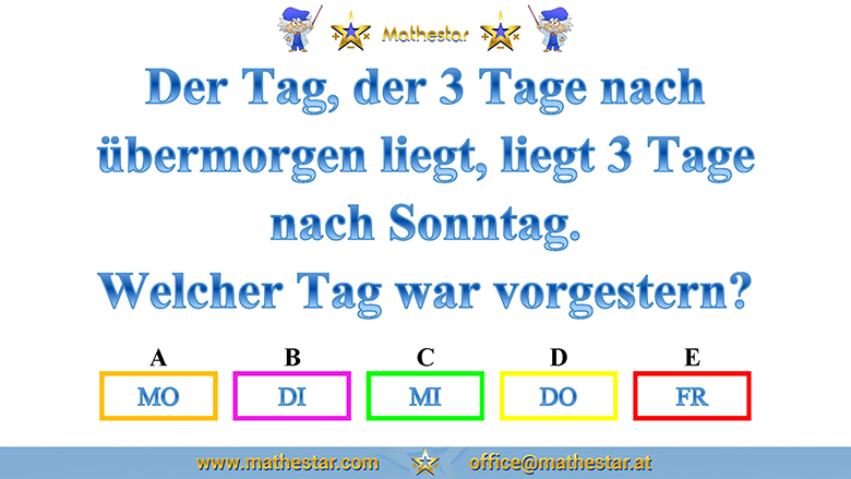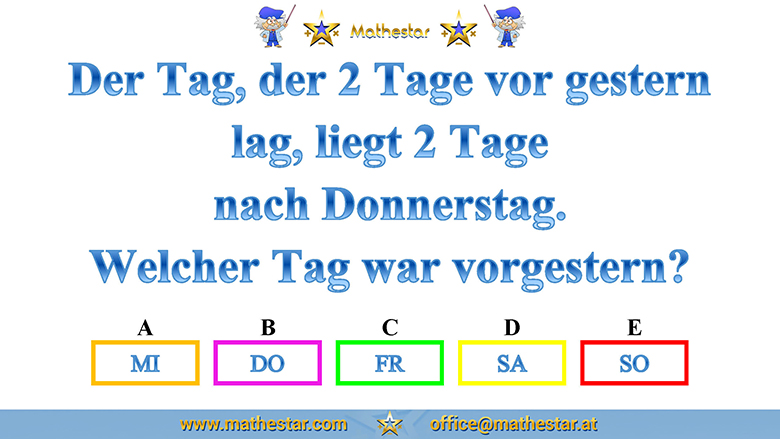 Zurück Übungsphase 12.Schulstufe Gehirnjogging Welcher Wochentag? AUSWAHL