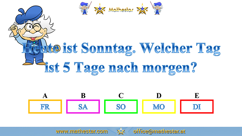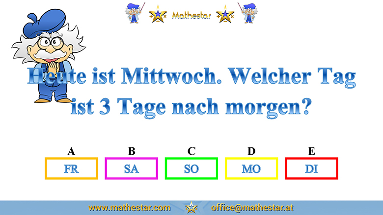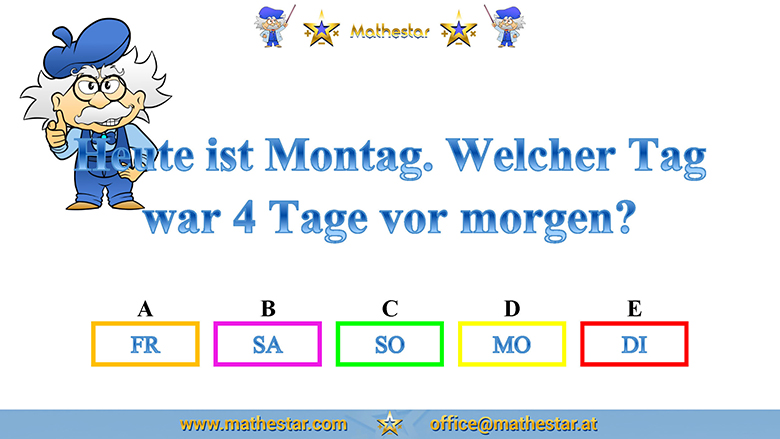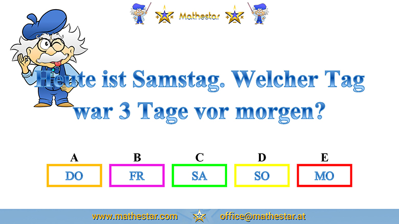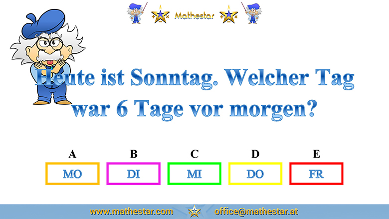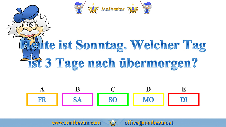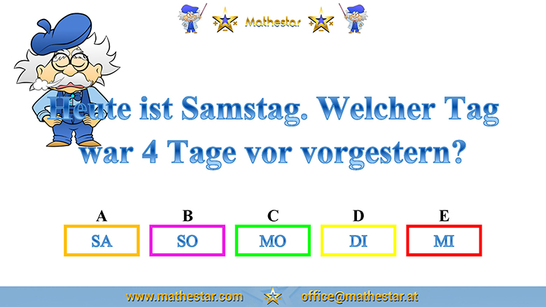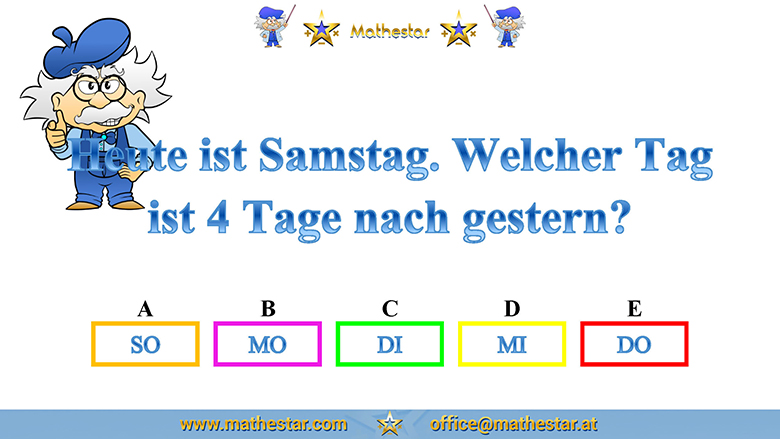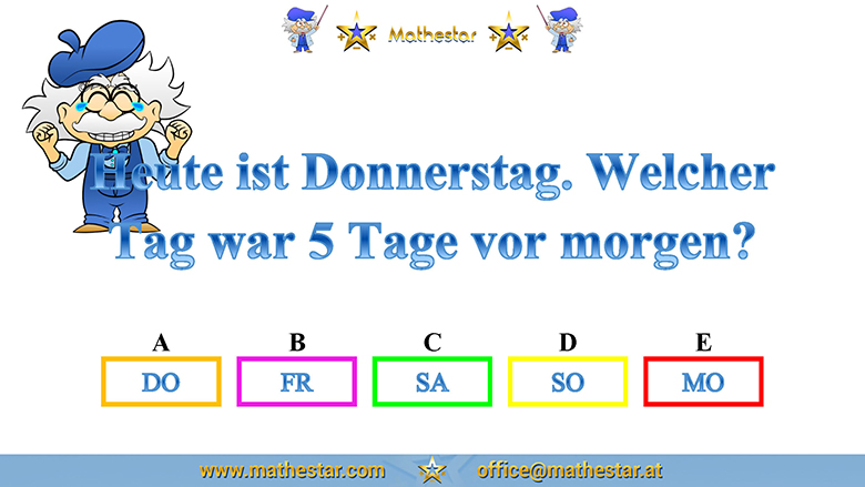 Zurück Übungsphase 4.Schulstufe Gehirnjogging Welcher Wochentag? AUSWAHL