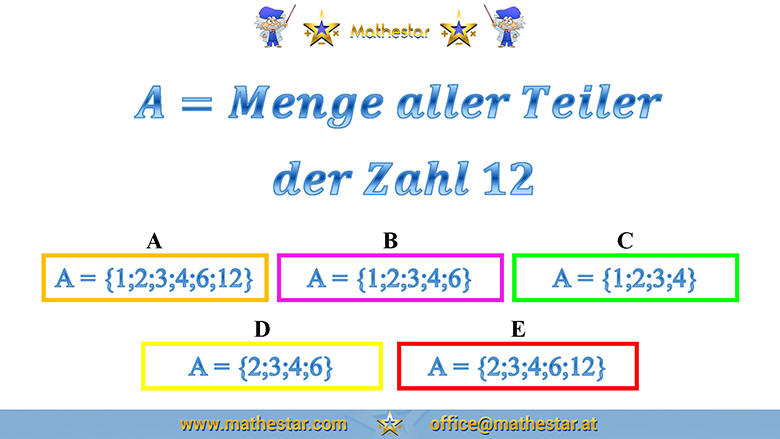 Zurück Übungsphase 5.Schulstufe Basiswissen Mengen 1 AUSWAHL