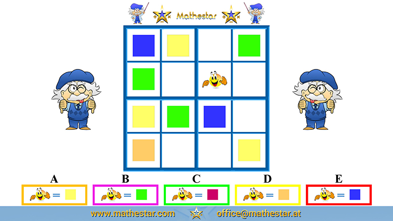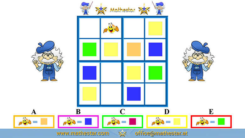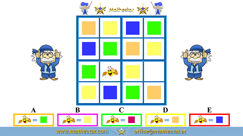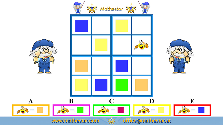 Zurück Übungsphase 5.Schulstufe Gehirnjogging Sudoku 4x4 Symbol AUSWAHL